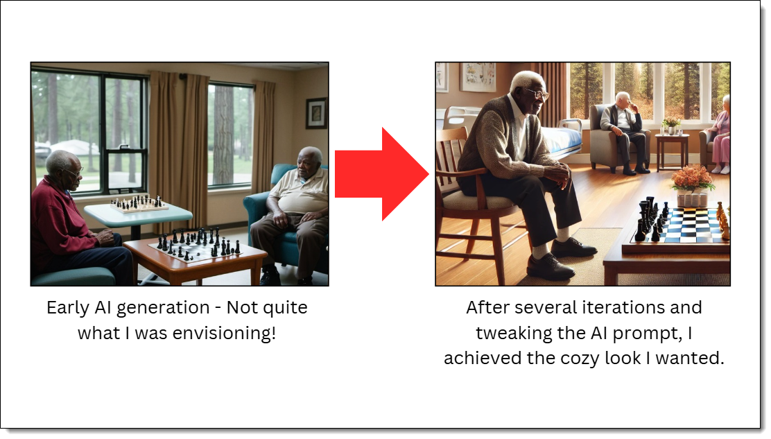 I was pleased with my decision to use AI-generated images for the project. Although it required multiple iterations, I successfully created the characters and the warm, cozy environment I had originally envisioned.